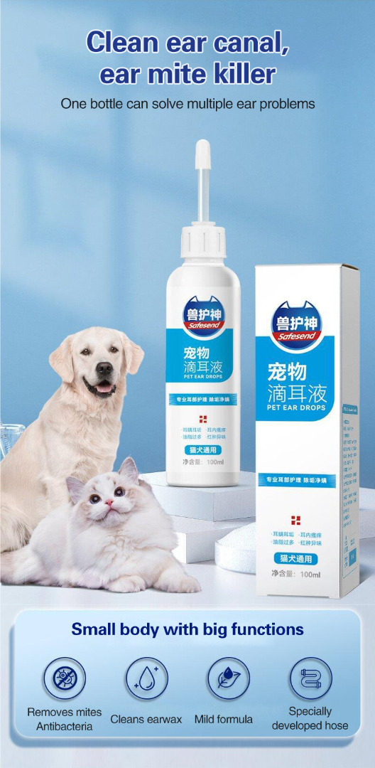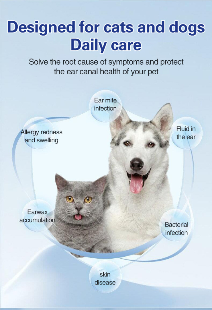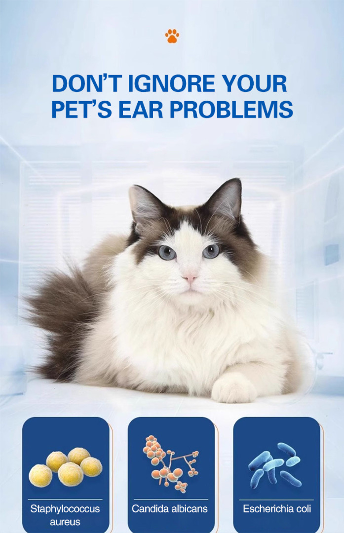 🐶🐱Univerzális fülcsepp macskáknak és kutyáknak - távolítsa el a fülatkákat, tisztítsa meg a füleket, gátolja a baktériumokat, eltávolítja a szagokat